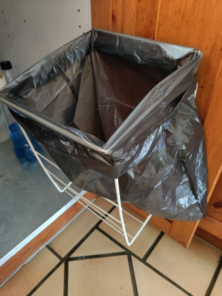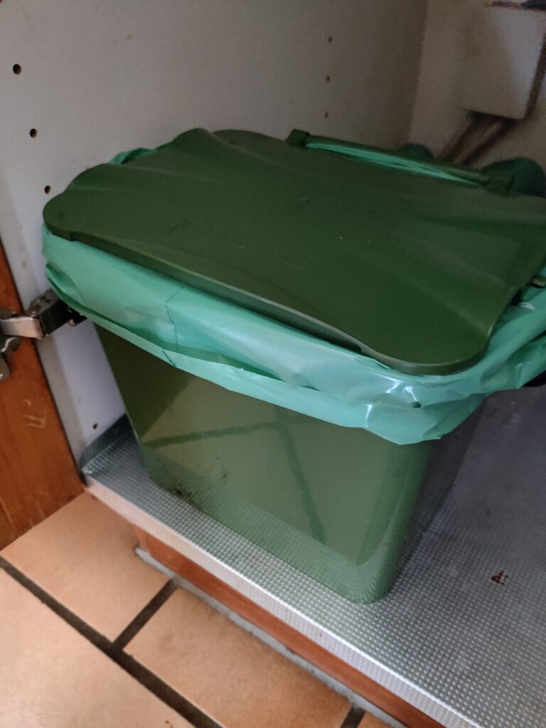 Der er en kompostbeholder, hvor utilbredte grøntsager kan genanvendes. Der må ikke komme tilberedte madvarer og animalske produkter i komposten.